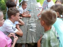 Дети были поделены на команды с помощью жеребьёвки. После прохождения каждого испытания результаты вписывались в турнирную таблицу. И первым заданием было придумать девиз, эмблему команды, а также выбрать капитана. На первой станции «Цепочка слов» нужно было вписать буквы вместо пропусков так, чтобы они являлись окончанием предыдущего слова и началом следующего. Следующая станция – «Конкурс капитанов». Им предлагалось написать диктант не простой, а цифровой. Прослушав утверждения, капитаны писали на листе бумаги цифру 1, если согласны, не согласны – цифру 0. Задание на третьей станции «Отгадай слово»: образовать из двух слов новое. На четвёртой «Лишнее слово» игроки, внимательно посмотрев на ряды слов, выяснили, как они между собой связаны и назвали лишнее. На станции «Собери пословицу» правильно соединили пословицы и поговорки. Не все ребусы на последней станции «Головоломка» оказались под силу ребятам. Но не смотря на это, дети ушли домой в приподнятом настроении.