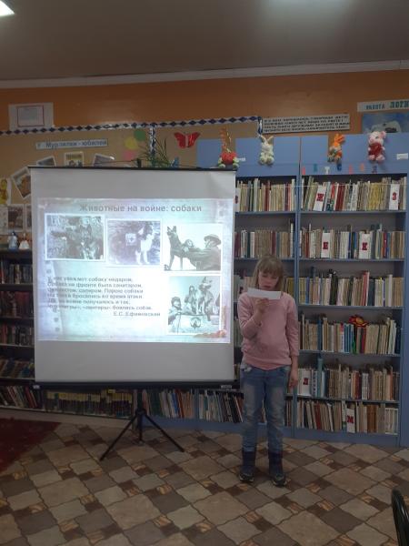 25 марта второй день Недели детской книги. Для юных пользователей проведена беседа "Без званий и наград. Животные на войне" с показом презентации. Ребята познакомились с нашими братьями меньшими, которые в тяжёлые военные годы воевали рядом с солдатами на фронте. Рассказали о верных помощниках солдат - собаках, о лошадях, а также о лосях, которые помогали партизанам. С удовольствием прослушали историю о том, как кошки спасли лётчика и рассказ о кошках, большую роль сыгравшие в блокадном Ленинграде. Рассказали о голубиной почте и о других птицах, помогавшим нашим воинам. Все они совершали подвиги, не зная этого, спасали тысячи человеческих жизней. Участники мероприятия читали стихи и рассказывали о своих домашних питомцах, которые живут сейчас в мирное время.