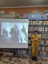 В библиотеке провели обзор книг на военную тематику "Эти книги нам расскажут о войне". Также ребята зачитывали отрывки из знакомых произведений. Посмотрели мультфильм "Солдатская сказка", созданный по рассказу К. Паустовского "Похождения жука- носорога".