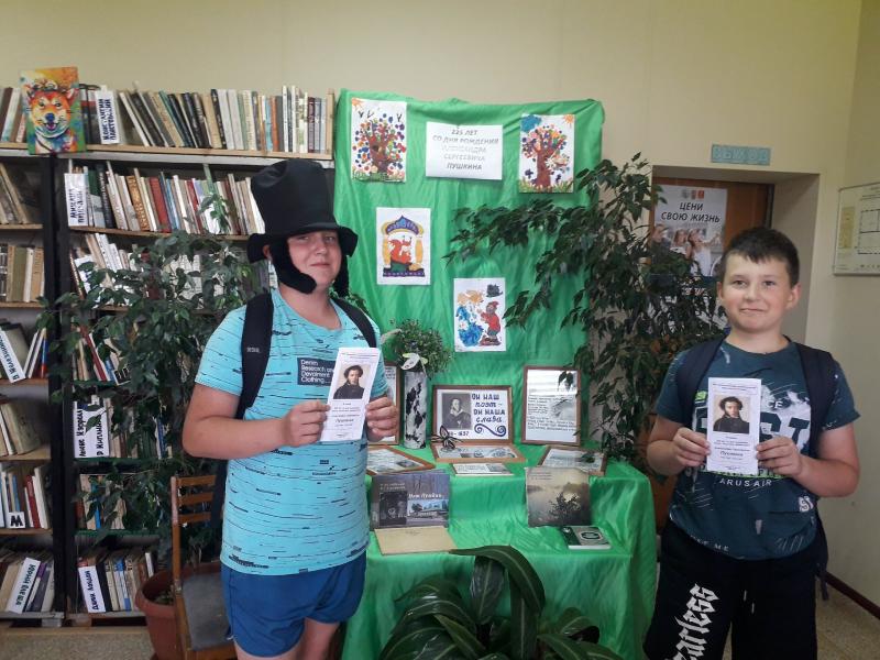 6 июня - Пушкинский праздник - 225 лет со дня рождения А.С.Пушкина в летнем оздоровительном лагере " Рябинка" совместное мероприятие Староторопской библиотеки, Староторопского ДК. Литературно - музыкальная гостинная " И вновь я посетил..." В уютном кресле за столом сидит няня Арина Родионовна и А.С.Пушкин. Арина Родионовна рассказывает сказки. Александр Сергеевич очень любит свою няню. Он посвящает ей стихи, сказки услышенные в детстве от неё, ложатся в основу сказок, написанных поэтом. Что бы оказаться в сказке библиотекарь предлогает ребятам сказать волшебные слова: