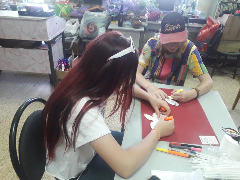 У нас в гостях - Ольга Жемчуева, которая уже много лет проводит мастер классы и игры с детьми и взрослыми. Сегодня она провела мастер класс для самых маленьких читателей нашей библиотеки: " Порхающее лето"- создание бабочки из бумаги. Семья Лазаревых, Семья Богдановых - мама с дочерью, пришли взять книги на лето и увлеклись бабочками. За участие в мастер классе библиотекарь подарила подарки самым маленьким участникам - книжечку и шарик. Спасибо Ольге Жемчуевой за увлекательное занятие. А еще ребята попробовали себя в роли рыбака. Ловили рыбу.