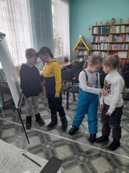17 февраля для детей кружка «Книгаренок» прошел час развлечений "Дружба -это ты и я". Ребята познакомились с художественной литературой о дружбе С. Михалкова «Песенка друзей», В. Сутеева «Яблоко», Агния Барто "Мой друг", показали инсценировку сказки В.Сутеева «Под грибом». Играли в игры "Да-да-да, нет-нет-нет",«Друг к дружке». В конце мероприятия вместе назвали правила, которые помогают сохранить дружбу и собрали цветок дружбы. Потом все вместе посмотрели мультфильм «Самый большой друг» .