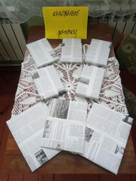 Игра «Жмурки» - одна из любимых в нашем детстве. В библиотеке тоже можно поиграть в «Жмурки», но уже в «Книжные». «Книжные жмурки» — это книжная выставка – сюрприз, на которой все книги обёрнуты бумагой, и читатель выбирает их вслепую. На нашей выставке книги были подобраны с учётом возраста посетителей. Дети младшего школьного возраста, прочитав книгу, должны были нарисовать рисунок, а среднего – написать небольшой отзыв.