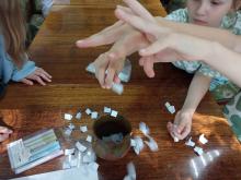«Семь раз отмерь, один раз отрежь» - так называлась игра – лотерея. Каждый из участников игры получил методом жеребьёвки получил конверт с лотерейными билетами внутри. В каком-то из них выигрышный билет. Для того, чтобы узнать, в каком конверте счастливый билет, нужно отрезать его краешек. Но как гласит русская народная пословица надо сначала «семь раз отмерить», то есть выполнить семь заданий.
