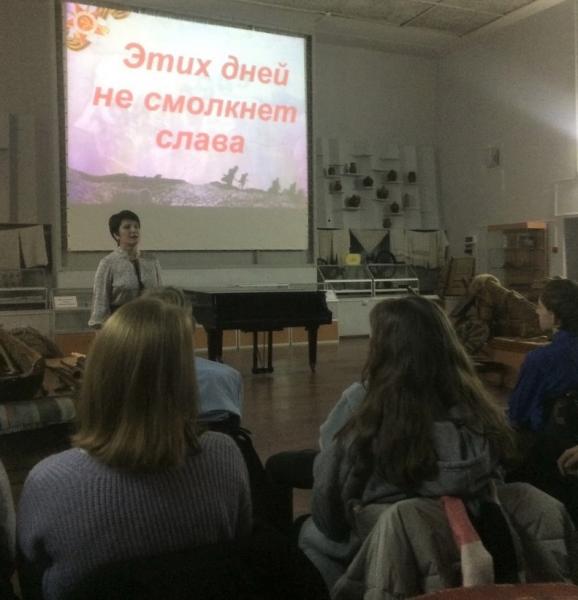 Библиотекари представили участникам встреч публикации разных лет, приуроченные районной газетой "Авангард" этому памятному событию, а также материалы и издания, хранящиеся в фонде библиотеки. В музее встречи сопровождались экскурсией по экспозиции музея, знакомством с предметами времен Великой Отечественной войны, которые позволяли окунуться в атмосферу тех, далеких для нас событий.