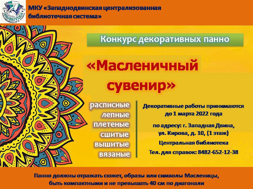Центральная библиотека приглашает всех желающих к участию в творческом конкурсе «Масленичный сувенир».