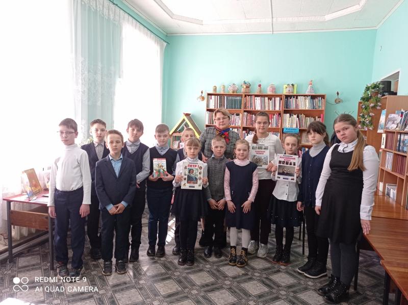 Библиотекарь рассказала интересные факты о детских и юношеских годах будущего императора, о том, какие государственные преобразования произошли в период его правления, а также о военных походах и победах русской армии под командованием Петра. Учащиеся прослушали рассказ Сергея Алексеева «Сено, солома».