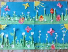 А какие они - Подснежники?.. Ответы на эти и многие другие вопросы мы ищем в книгах. И все наши беседы проходят в творческой мастерской. Сегодня мы знакомимся с апликацией. Ребятам предстоит сделать картину на тему: "И расцвели на полянке подснежники". За беседой рождаются "шедевры" детских фантазий. Вот какие интересные фантазии у нас получились.