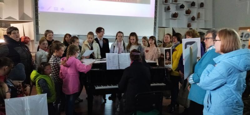 -В Историко-краеведческом музее в День Победы для участников "Бессмертного полка" прошла акция-флэшмоб "Песни Победы", организованная педагогами и воспитанниками детской школы искусств. Исполнение военных песен поддержали гости музея. Мероприятие сопровождалось видеороликом портретов западнодвинских ветеранов и участников Великой Отечественной войны. Затем все желающие могли посетить выставку детского рисунка "Победе посвящается...", познакомиться с выставкой фронтовых писем и пройтись с экскурсией по экспозиционным музейным выставкам.
