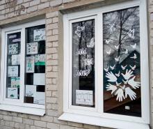 -Бенецкая библиотека приняла участие в акции "Окна Победы", красочно оформив окна библиотеки материалами и элементами.