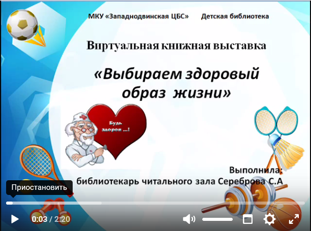 -Первая конкурсная работа - виртуальная книжная выставка "Выбираем здоровый образ жизни", подготовлена библиотекарем Детской библиотеки Светланой Александровной Серебровой.