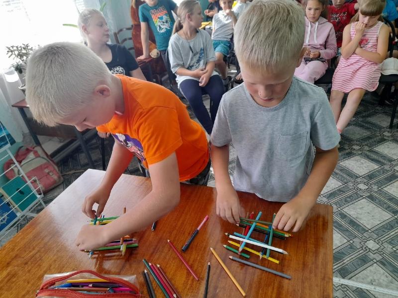 Для детей из летнего лагеря СОШ №2 прошла развлекательная программа "Канцелярские потехи"