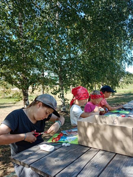 Ежегодно 22 августа в России отмечается День Государственного флага Российской Федерации. Флаг представляет собой прямоугольное полотнище из трёх горизонтальных полос: верхней — белого, средней — синего и нижней — красного цвета.Ребята под руководством библиотекаря изготовили аппликацию «Праздничный букет», посвященную этому празднику. Букет состоит из ромашек – белый цвет флага, васильков – синий цвет и маков – красный цвет.