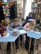Сегодня нашу жизнь сложно представить без мультфильмов. Милые, очаровательные, смешные, весёлые, добрые. Ребята любят смотреть мультфильмы и неплохо их знают. А убедиться в этом нам удалось на киноквизе "Дивный мир мультфильмов", на котором ребят ждали встречи со многими известными мультперсонажами. Две команды "Том и Джерри"(мальчики) и "Летающий корабль" (девочки) продемонстрировали свои знания в четырёх турах. На каждый вопрос давалось 10 секунд , чтобы найти ответ. Первый тур назывался "Отгадай песню по картинкам". Второй тур предложил участникам угадать мультфильм по голосу героя. В третьем туре ребята должны были угадать мультфильм по глазам персонажа. Четвёртый тур назывался "Угадай мультфильм по песне". Каждая команда набрала по 35 баллов. Победила Дружба. Ребята не хотели покидать библиотеку и мы предложили им нарисовать героев мультфильмов.
