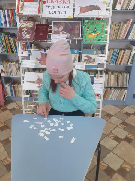 Сказочная мудрость проста, незатейлива, и в то же время богата и разнообразна. Мудрость — это мысли о добре и зле, о том, что больше всего надо ценить в людях и в жизни. Сказки любят и дети, и взрослые. Они завораживают сюжетами, погружают в мир волшебства, там добро побеждает зло, а в героях пробуждаются лучшие качества. В Ильинской библиотеке с юными читателями прошла игра-путешествие "Сказка мудростью богата". Ребята поучаствовали в конкурсе "Сказки в вопросах и ответах", отгадывали сказочный кроссворд, собирали "Сказочный конструктор" (название сказок), называли литературные произведения, состоящие из двух слов, по первому предложенному слову, вспомнили волшебные предметы. На выставке в помощь ребятам были подобраны книги соответствующей тематики.