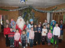праздничная программа, дети веселились, рассказывали Деду Морозу стихи. Вокруг ёлки водили Новогодний хоровод. Все дети получили подарки.