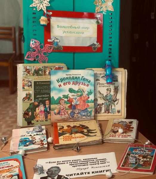 Для маленьких посетителей библиотеки оформлена книжная выставка "Волшебный мир Успенского".
