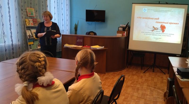 81 годовщине освобождения города и района отнемецко-фашистских захватчиков центральная библиотека посвятила краеведческий экскурс «Не властно над памятью время». Уроки краеведения прошли для восьмиклассников СОШ №2 и юнармейцев отряда "Земляне" СОШ №1. Библиотекарь познакомила ребят со зверствами врага, оккупировавшего западнодвинскую землю в течение почти пяти месяцев. Враг разрушил предприятия и учреждения, жилые дома. На территории муниципалитета были сожжены целые деревни, погибли сотни мирных жителей, более полутора тысяч семей остались без крова. Чтобы противостоять оккупантам западнодвинцы создали партизанский отряд, занявшийся подрывной деятельностью и диверсиями против захватчиков.