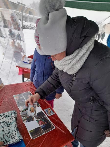 В библиотечную палатку посетителей весело зазывала развевающимися цветными лентами кукла Масленица. Посетителей тепло приветствовали библиотекари, предлагая разнообразные развлечения. Здесь можно было не только полюбоваться репродукциями картин русских художников с изображением празднования Масленицы, но и принять участие в игре на внимательность.