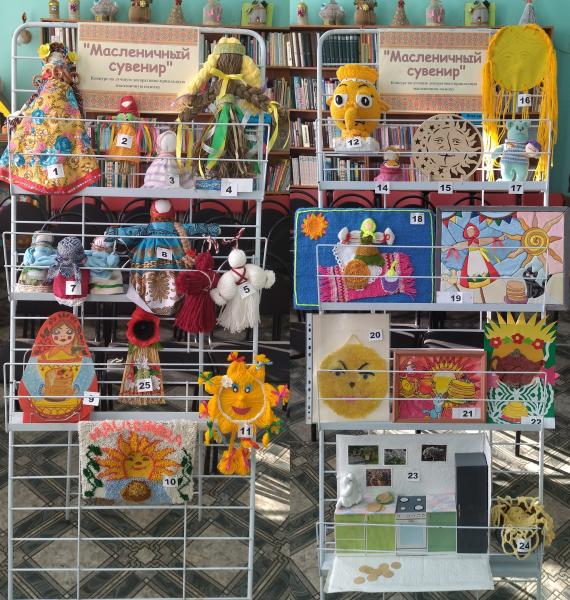 По многолетней традиции любимому народному празднику библиотека посвящает тематический творческий конкурс декоративных работ "Масленичный сувенир". В этом году тему муниципального конкурса выбрали подписчики нашей страницы, проголосовав за весь возможный спектр идей для творчества. Поступившие на конкурс работы, а их было 24, мы условно поделили на две номинации: "Масленичная кукла" и "Масленичный сувенир". Победителей в них определило жюри конкурса, а вот обладателя приза зрительских симпатий выбирали посетители праздника. В результате по мнению жюри лучшей куклой была признана работа №4 Ильиной Дины (воспитанницы ДДТ), а лучшим сувениром коллективная работа рукодельниц из кружка "Кружевницы" Ильинской сельской библиотеки под номером 18. А вот зрители большинством проголосовали за декоративный коврик "Солнце", выполненный семьей Шамриных, работа №26.
