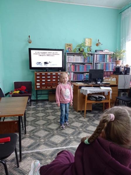 Участниками акции стали воспитанники детского сада №1 и дети кружка "Книгаренок". Библиотекарь в своём рассказе поведала детям о том страшном времени, о мужестве, героизме советских солдат, проявленных в борьбе за освобождение нашей Родины. Затем ребятам был прочитан рассказ Сергей Алексеева "Первая колонна"