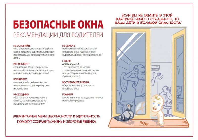 • Для детей — в последнее время участились случаи выпадений детей из окон. Не полагайтесь на сетки на окнах, не оставляйте маленьких детей без присмотра.