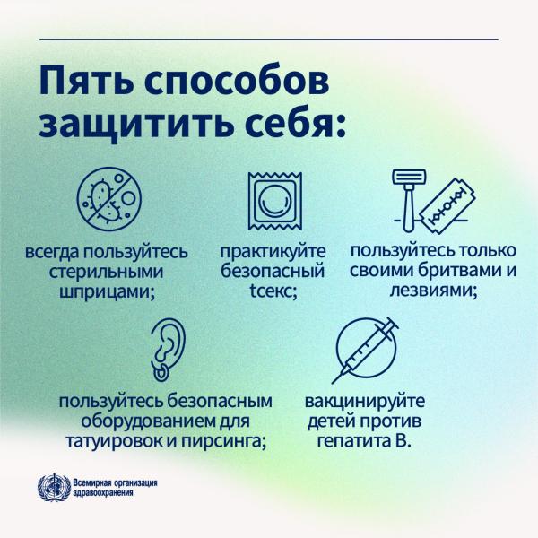 - вакцинация против гепатита В (которая защищает как от гепатита В, так и гепатита D);