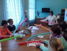 Один из мастер-классов провела директор Дома детского творчества Э.И. Садовщикова, она рассказала о тонкостях создания фигур из воздушных шаров и предложила самостоятельно создать воздушный цветок.