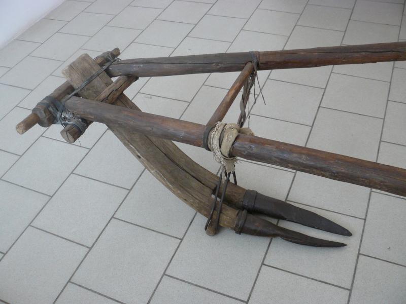 Несколько лет назад, покидая деревню Железово, ее житель Александр Васильевич Прохоров привез в музей то немногое, что осталось у него после случившегося в доме пожара, в том числе деревянную соху. Любитель старины, он держал ее не только как экспонат, но и активно использовал в хозяйстве - обрабатывал с ее помощью земельный участок.