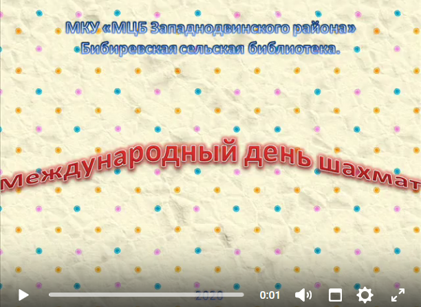 Шахматы для многих являются чем-то сложным и непонятным. Причина кроется в поверхностном знакомстве с игрой. Международный день шахмат – отличный повод разрушить этот стереотип и прекрасный повод познакомиться с игрой или познакомить с ней окружающих. Предлагаем вместе познакомиться с историей возникновения шахмат в видеоролике, подготовленном библиотекарем Бибиревской сельской библиотеки.
