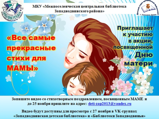 Сделайте это онлайн, присоединившись к библиотечной акции «Все самые прекрасные стихи для мамы».