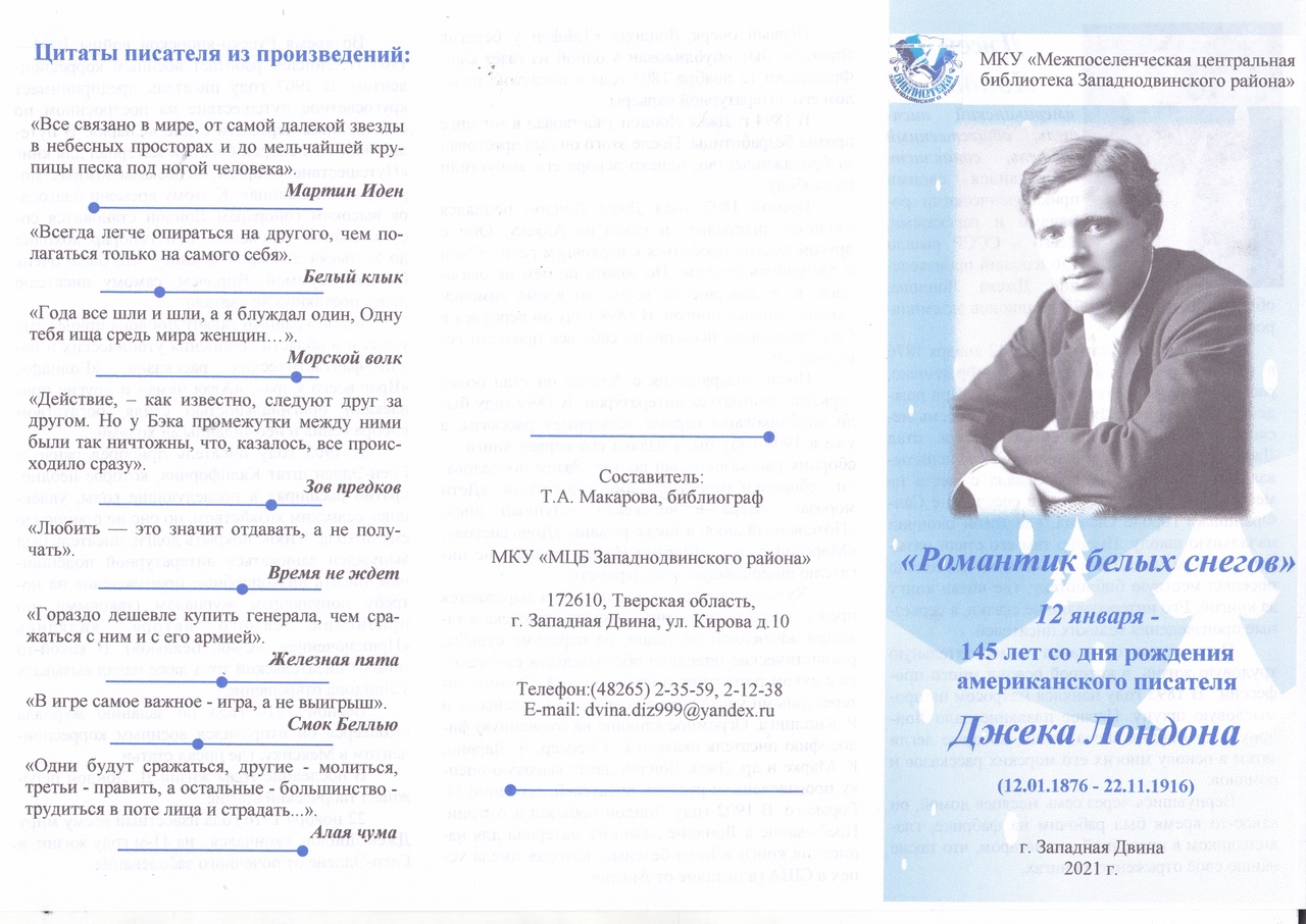 А также предлагаем буклет о жизни и творчестве писателя.