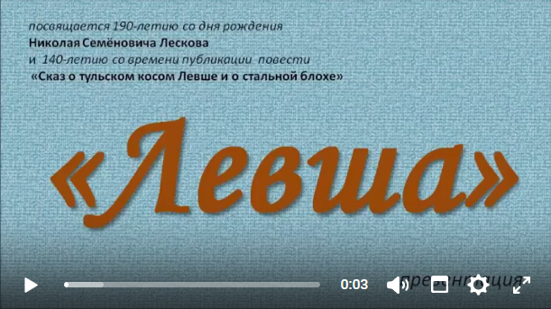 К юбилею писателя Ильинская библиотека подготовила видео-презентацию по повести "Левша", которую мы представляем сегодня вашему вниманию.