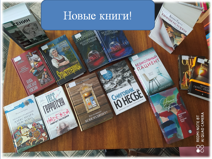 Поступление новой литературы в библиотеку всегда является знаменательным событием как для библиотекарей, так и для читателей. В марте этого года благодаря российскому политику В.А.Васильеву фонд нашей библиотеки пополнился новыми произведениями современных российских и зарубежных авторов: И.А.Богданова «Мера бытия», Т. Герритсен «Надежда умирает последней», А. Маринина «Безупречная репутация», Ю. Несбё «Снеговик», В.В. Сидоренко «Страстотерпицы» и др. От всей души благодарим Владимира Абдуалиевича за литературные новинки, которые несомненно будут востребованы нашими читателями!