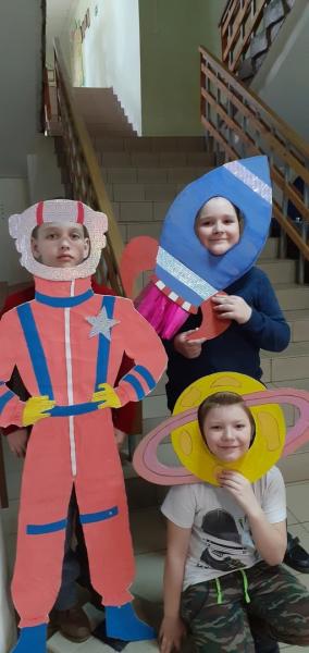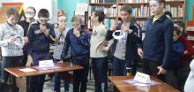 В фойе библиотеки всех участников ждали мастерская и фотозона, где все желающие могли примерить на себя костюм космонавта или стать на время пилотом библиотечной ракеты.