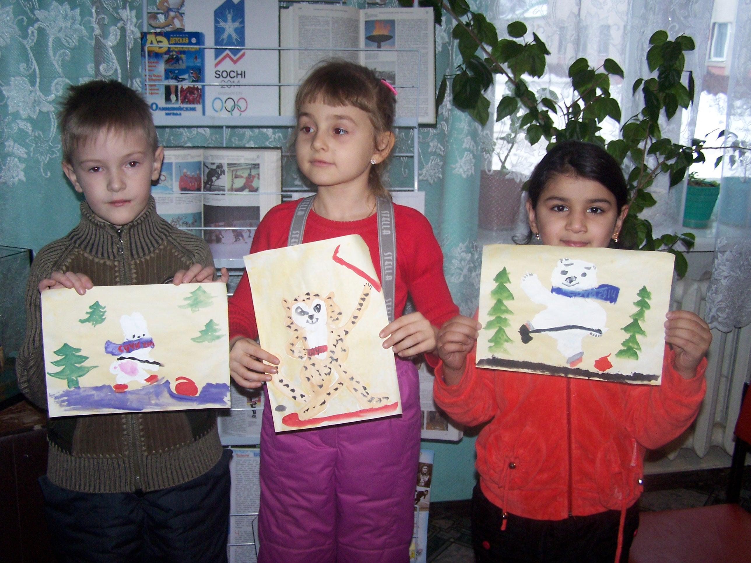 Так же в этот день прошел конкурс рисунков «Мой любимый талисман». Три работы стали победителями, их авторы получили призы, а остальные ребята на память об этом мероприятии получили Олимпийские флажки. Закончилось мероприятие прослушиванием Олимпийского гимна.