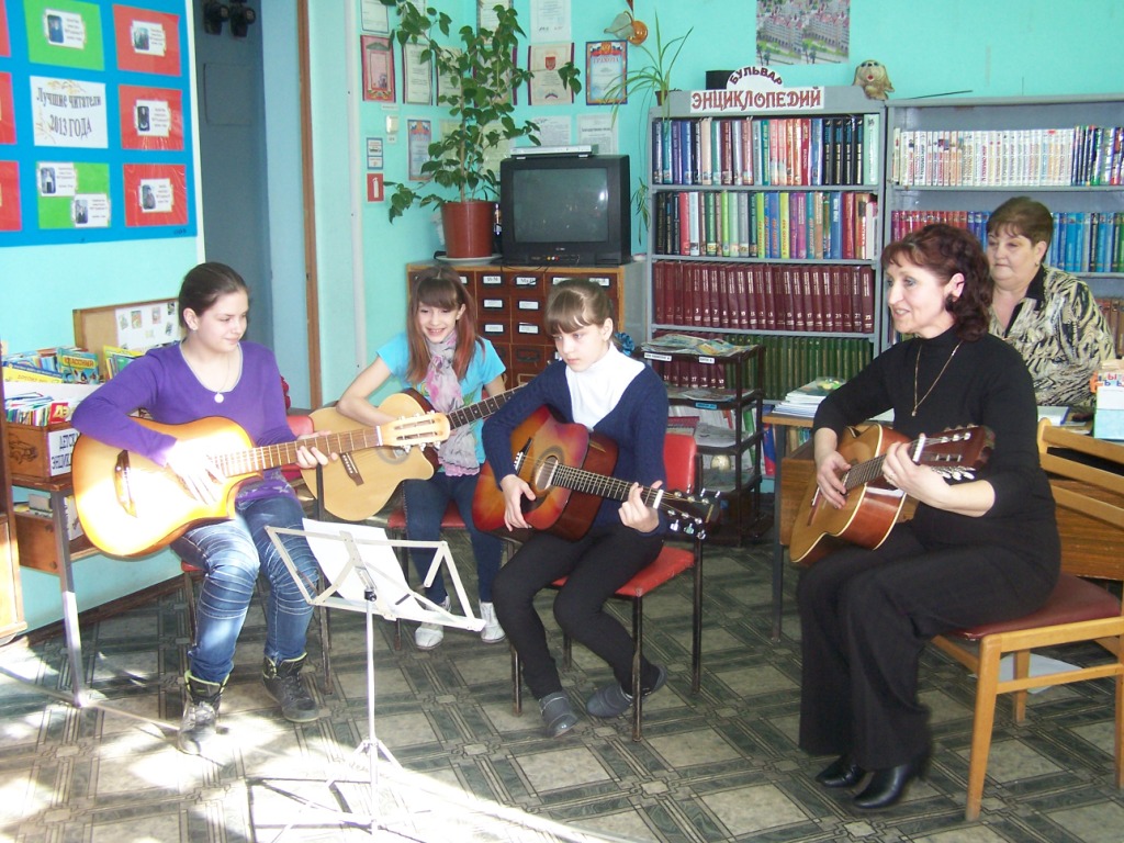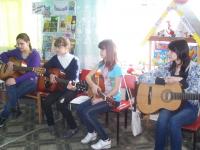 Ребята с удовольствием приняли участие в этом мероприятии. Они активно отвечали на вопросы викторины и внимательно слушали как романсы, колыбельные, так и игру на гитаре ребят из гитарного кружка. А в конце встречи детям был дан мастер – класс игры на гитаре.