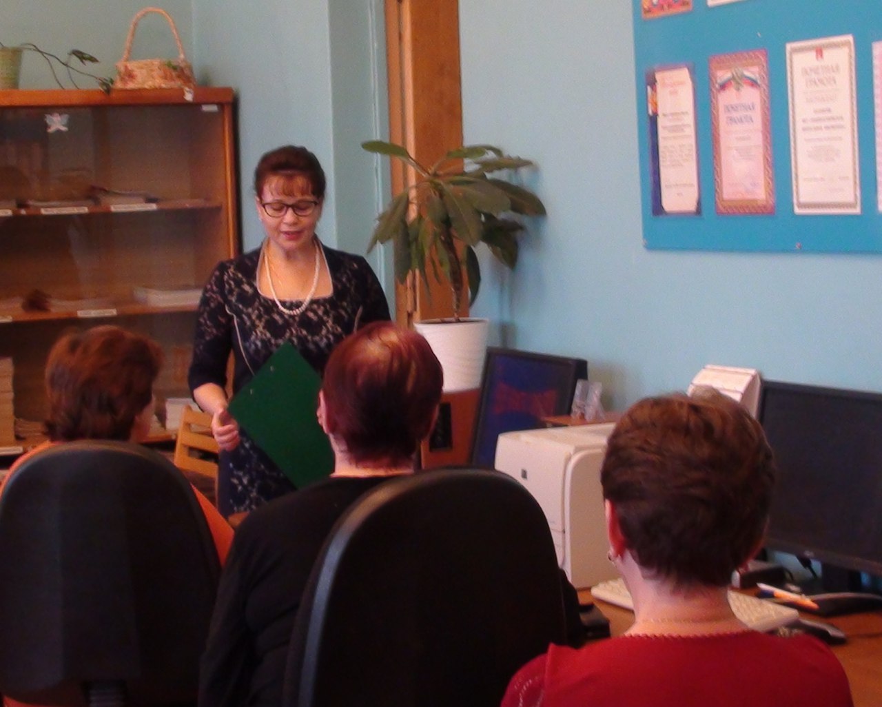 Перед началом занятия директор библиотеки приветствовала напутственным словом слушателей курсов.