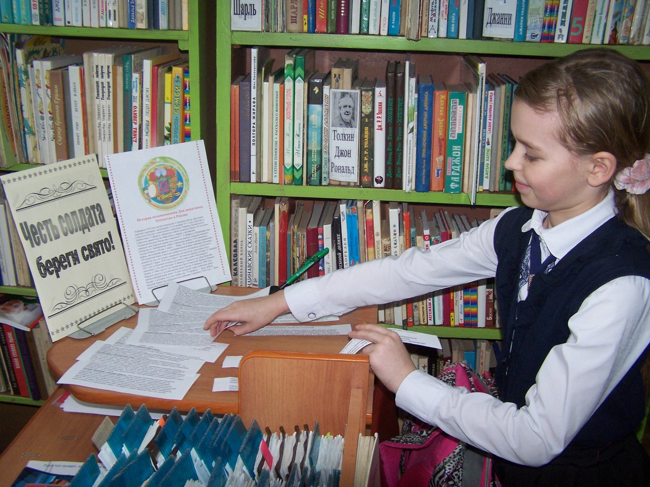 Читатели, приходящие в этот день, отвечали на подготовленные вопросы, выбирая их «вслепую». Вопросы были серьёзные и шуточные, на знание пословиц. Самые маленькие и желающие могли прочитать стихотворения к празднику о мальчишках, о наших защитниках, о мире. За активность ребята получили сладкие призы.