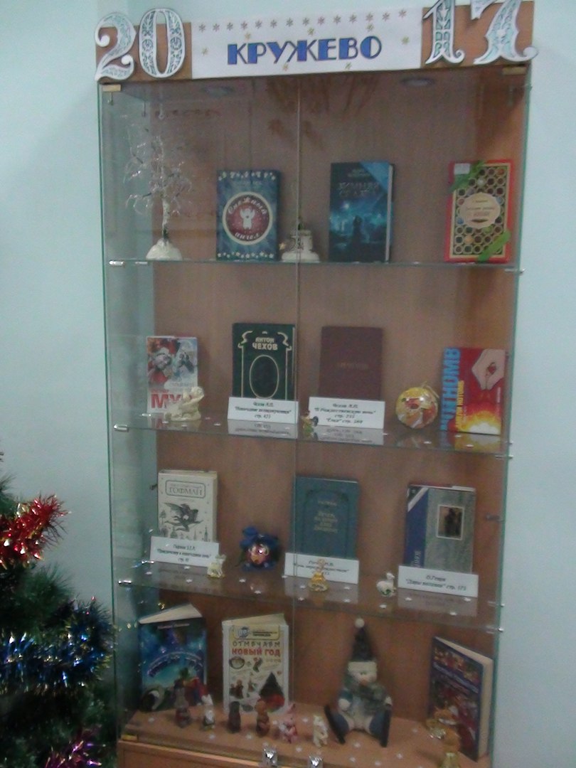 В первый день декабря библиотека представляет выставку новогодних предметов "Новогоднее кружево", расположившуюся в нашем фойе.
