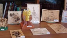 В читальном зале Центральной библиотеки проходит выставка декоративно – прикладного искусства. На ней представлены работы, сделанные в технике пирографии, то есть выжигания.