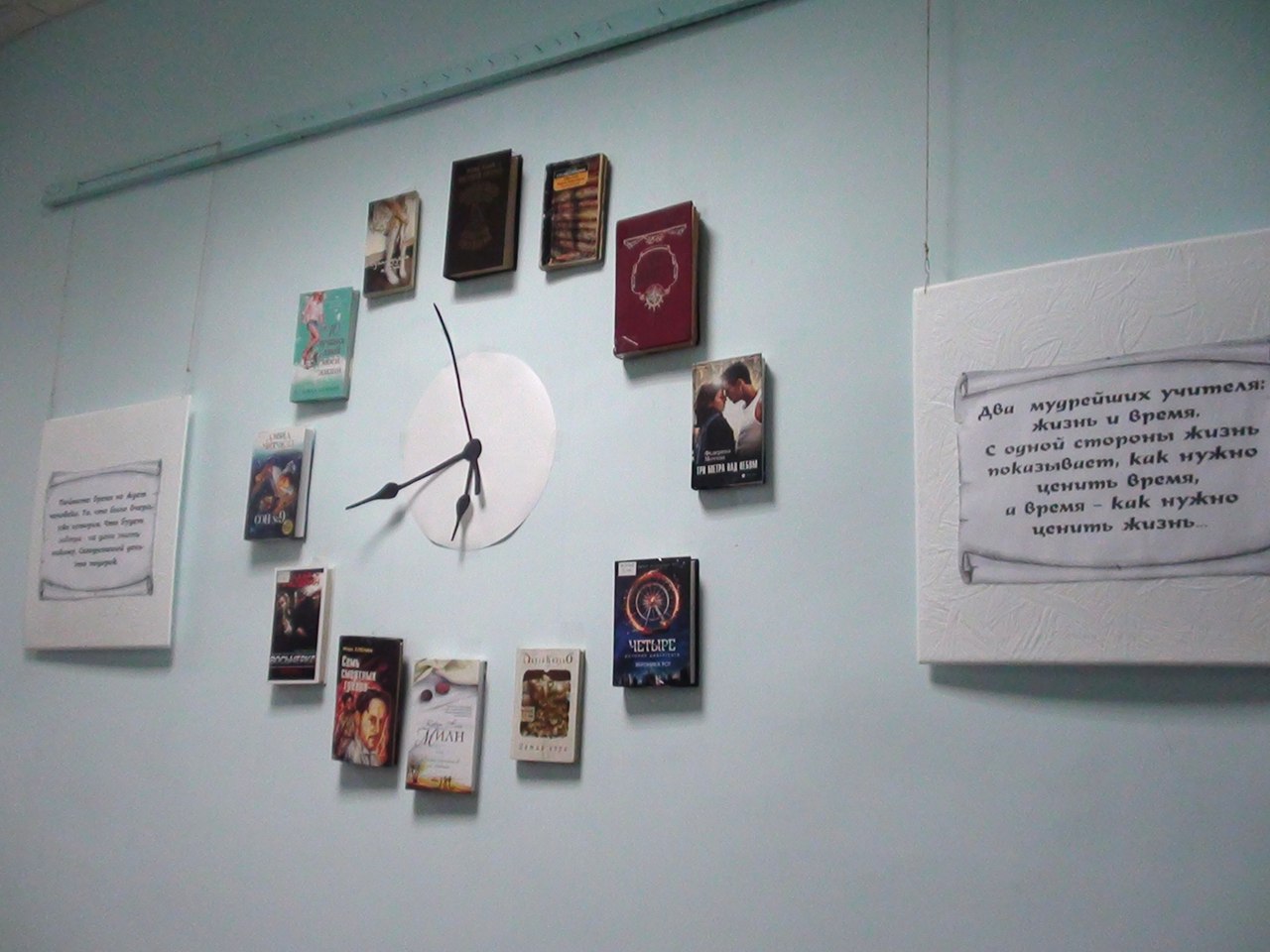 Пожалуй, именно так можно назвать книжную выставку, украсившую одну из стен фойе центральной библиотеки. Время течет, бежит и нам редко удается поймать его, оно как песок - "ускользает сквозь пальцы".