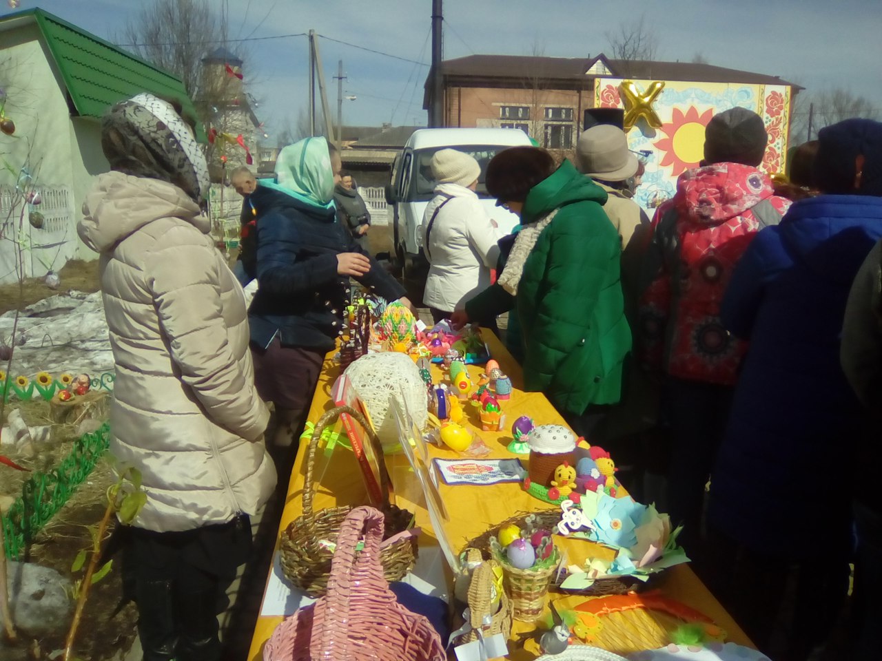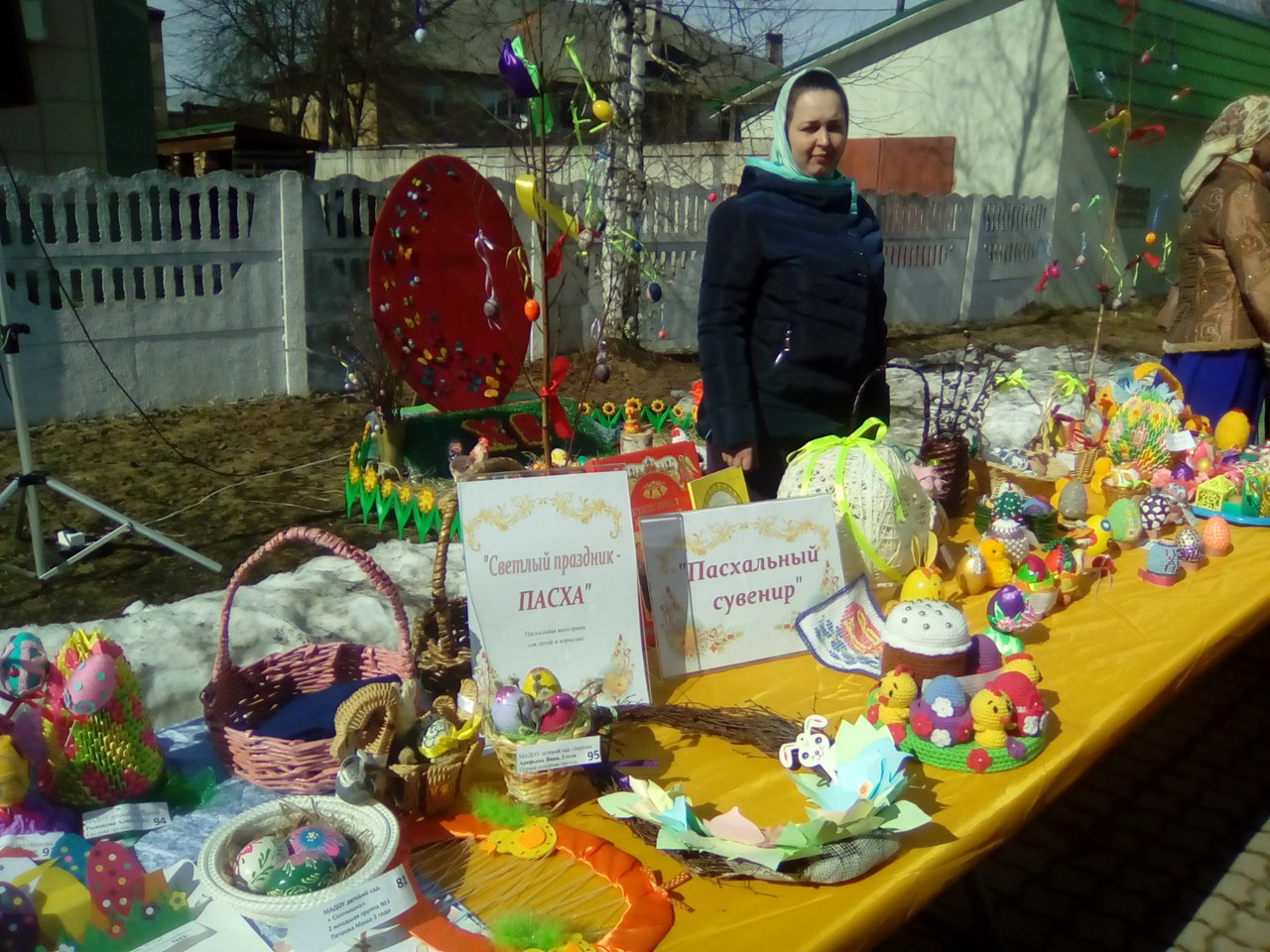 В праздник Светлой Пасхи возле Свято-Никольского храма библиотека представила выставку поделок декоративных яиц от читателей и библиотекарей "Пасхальный сувенир".