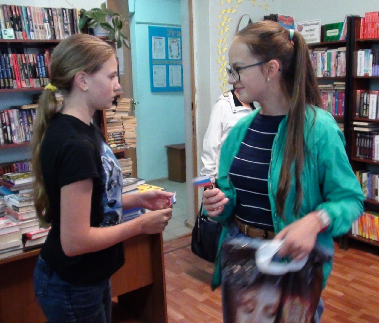 В этот летний день по случаю празднования дня рождения российского триколора Центральная библиотека предложила своим посетителям принять участие в исторической викторине, а заодно познакомиться с книгами, представленными на выставке "Наша гордость и слава".