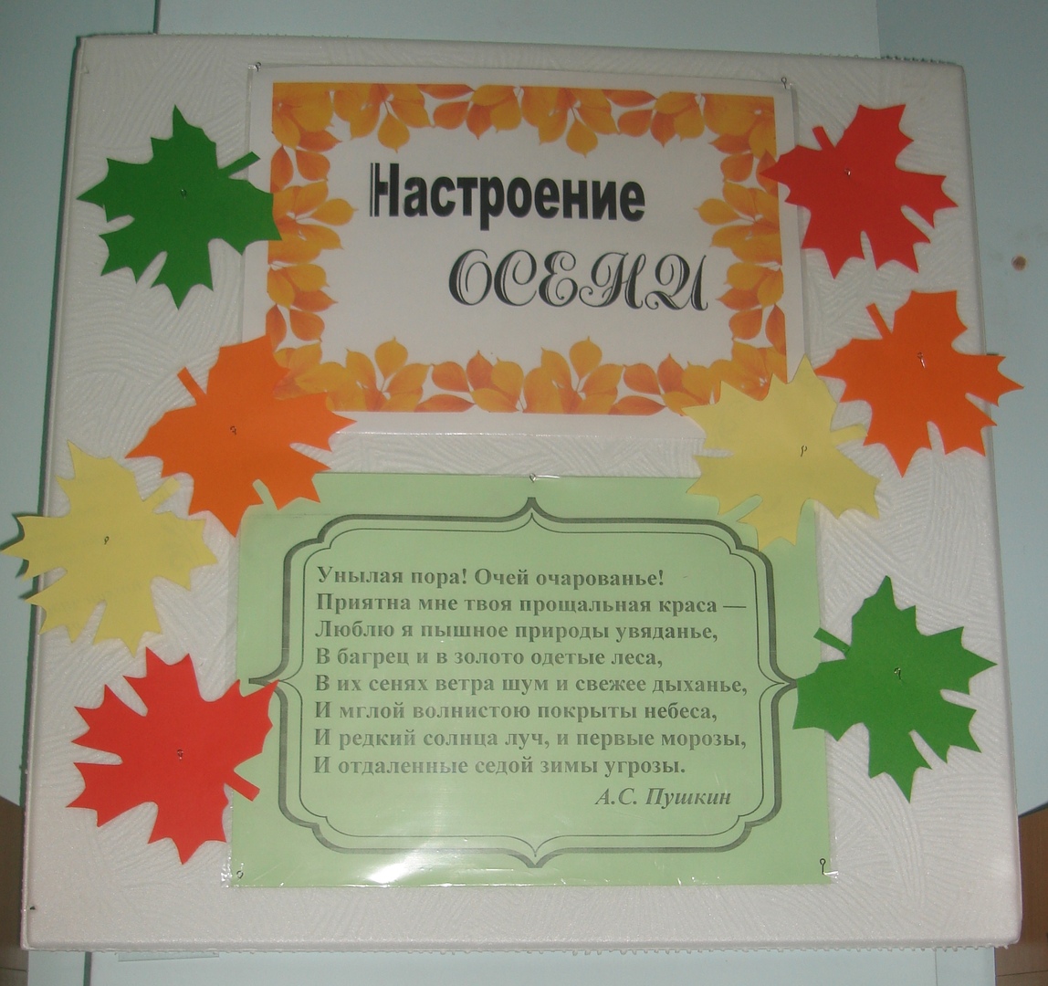 Выставкой "Осеннее настроение" мы открываем приход нового времени года - поры созревания, взросления, времени подводить итоги, чтобы с новой весной начинать все снова.