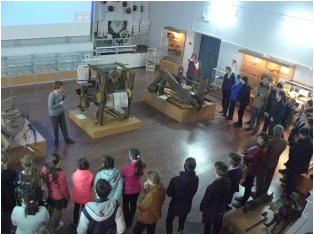 Спиридонова Алина: «…Я видела старинную печатную машинку, глиняные горшки, веретено, светец, лапти, старые ключи. Мне понравилось слушать старинную музыку и рассказ экскурсовода о том, как в годы ВОВ советская армия сражалась с немецко-фашистскими захватчиками на территории нашего района».