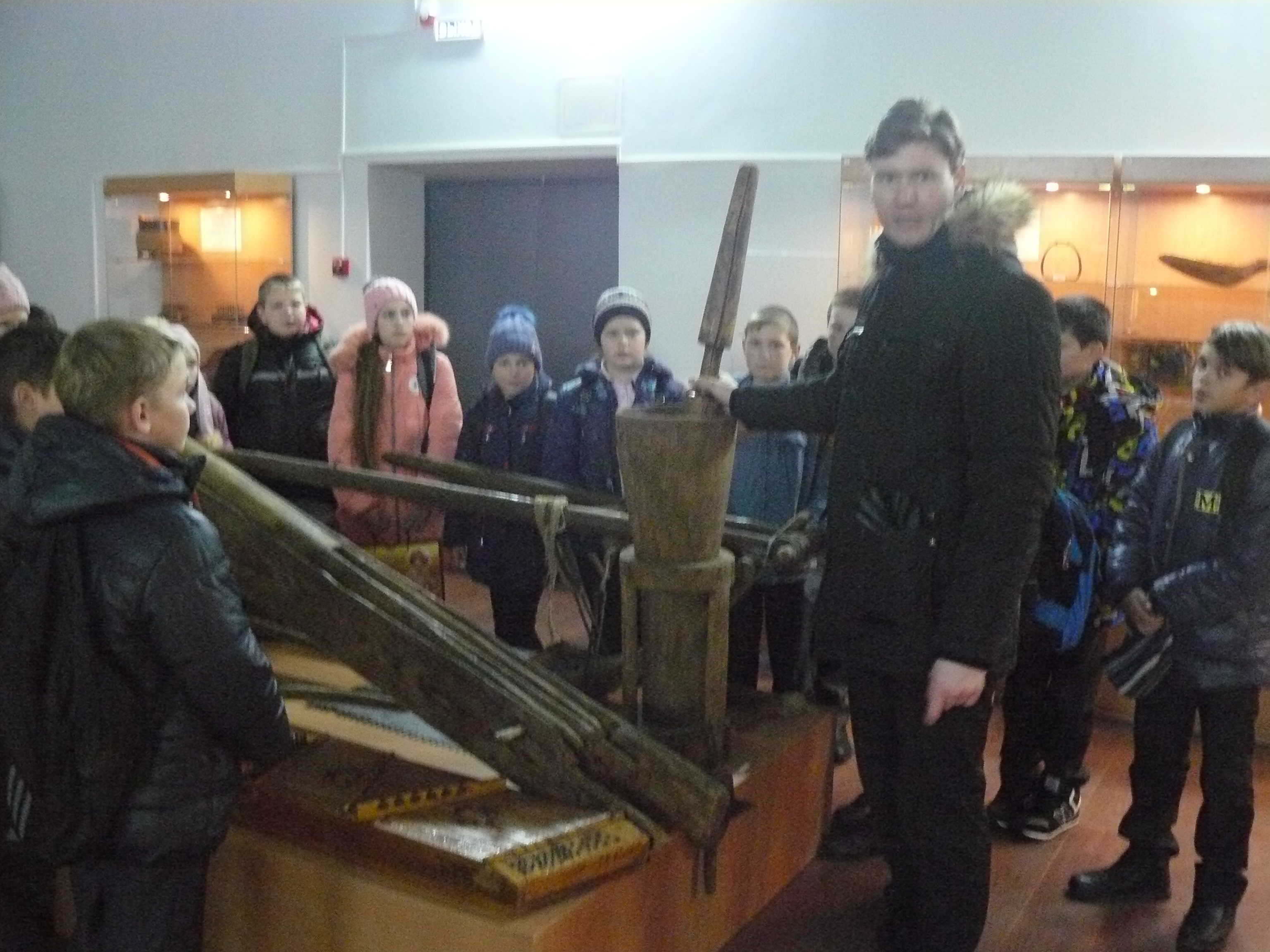 Учащиеся СОШ №1 в музее на уроках технологии (проводят методист музея Е. А. Коновальцев и учитель С. Н. Морозов), изобразительного искусства (проводит преподаватель ДШИ М. В. Никонорова) и истории (проводит учитель Г. К. Ефимов); в музее студенты Технологического колледжа; учащиеся СОШ №2; юные западнодвинцы на выставке живописи Ю. А. Никонорова и у экспозиции музея (детский сад №1).