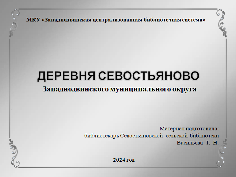 ВИЗИТНАЯ КАРТОЧКА Д. СЕВОСТЬЯНОВО